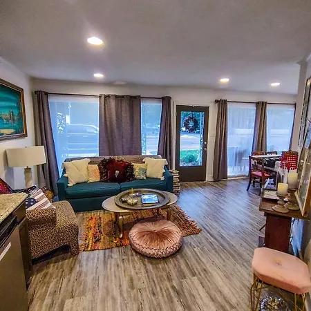 **Welcome to The Glam Room - Bohemian Glam Style Suite in Historic Jefferson, TX**, a captivating retreat that marries chic design with rich heritage. Nestled in the heart of a storied town, this suite exudes an inviting ambiance, perfect for both leisure and exploration. With vintage furniture mingling seamlessly with modern comforts, guests are enveloped in a unique atmosphere celebrating the eclectic spirit of Jefferson.